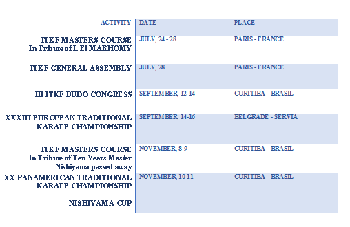 Sportovní kalendář ITKF